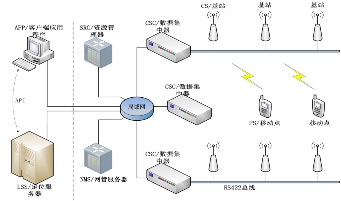 每個(gè)基站控制器最大負(fù)載72個(gè)基站,采集基站數(shù)據(jù)并轉(zhuǎn)發(fā)至定位服務(wù)器和系統(tǒng)資源控制器。